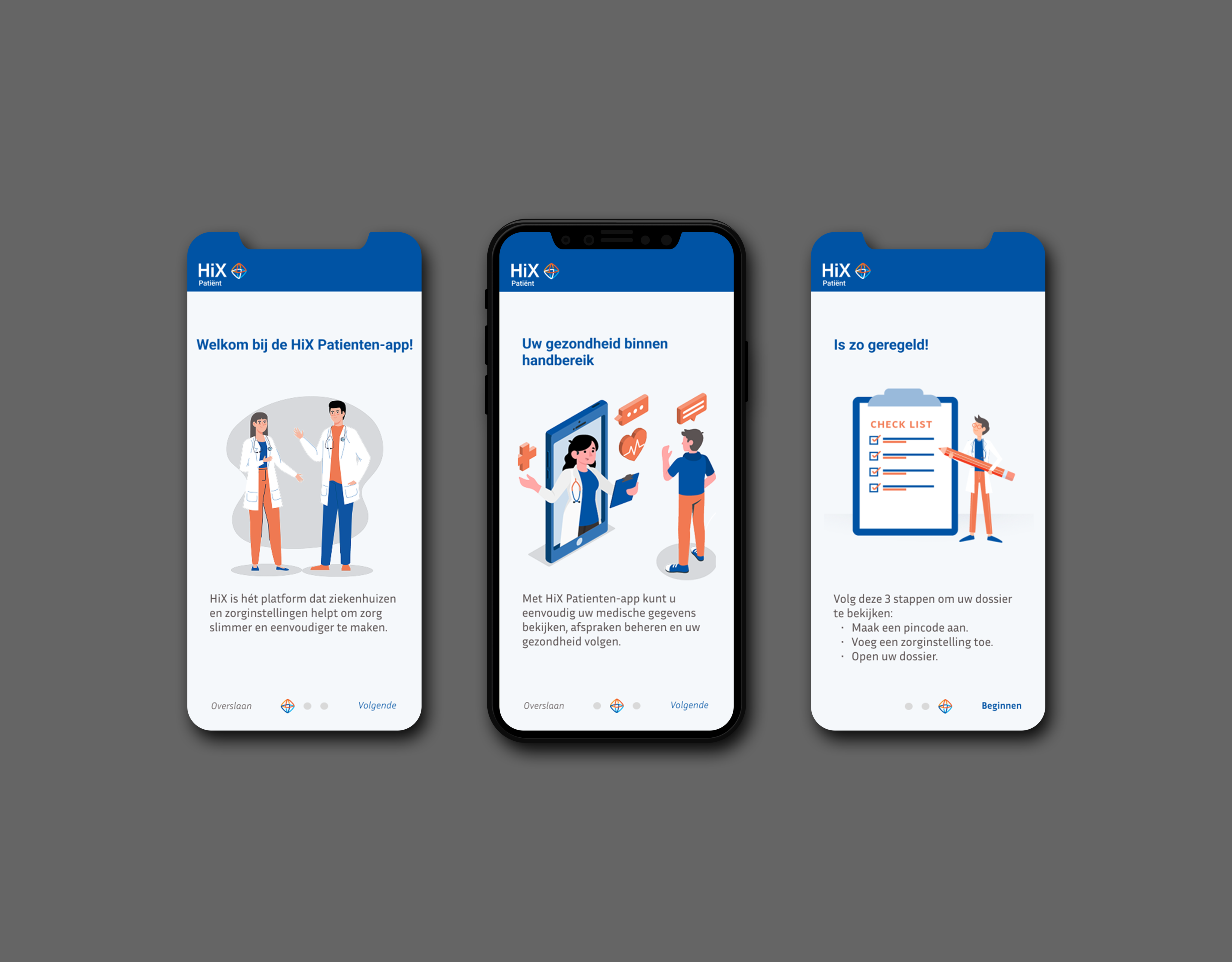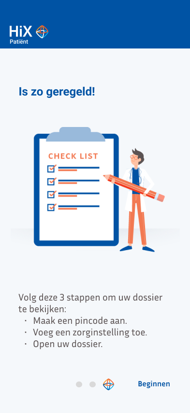 The onboarding flow features three intuitive screens that guide new users step by step.